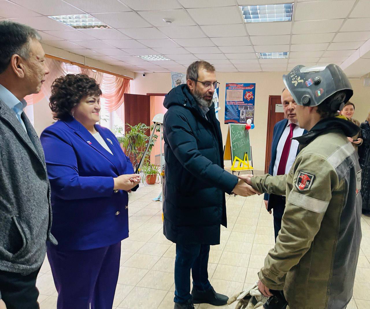 22 января филиал ГБПОУ ИО «Иркутский техникум архитектуры и стоительства» в г. Шелехове с рабочим визитом посетили председатель Законодательного Собрания Иркутской области Александр Ведерников вместе с депутатами Федором Саломатовым, заместителем министра образования Еленой Владимировной Апанович, Председатель комиссии по Регламенту, депутатской этике, Галиной Фёдоровной Кудрявцевой и Депутат Законодательного собрания Иркутской области Председатель Законодательного собрания Иркутской области Александр Викторович посетил учебное заведение в День студента, пообщавшись с учащимися, за круглым столом, с интересом отвечал на вопросы наших ребят и поздравив их с праздником. Он подчеркнул важность получения качественного профессионального образования, актуальность рабочих специальностей для экономики региона и пожелал студентам успехов в учебе и будущей карьере.